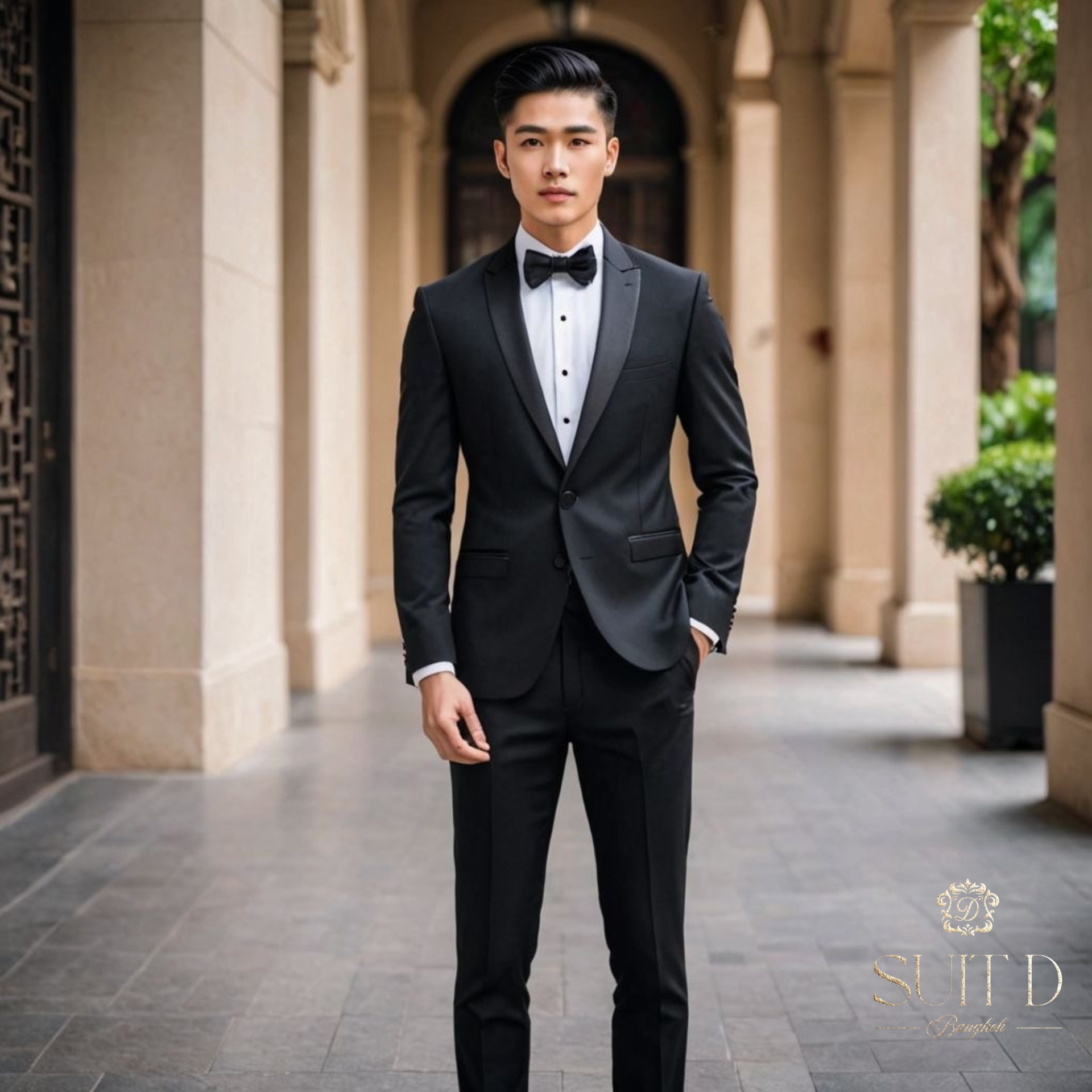 ชุดทักซิโดถือเป็นชุดที่หรูหราและเป็นทางการที่สุดสำหรับงานแต่งงาน เหมาะกับงานเลี้ยงในช่วงค่ำหรืองานที่ต้องการความเป็นทางการสูง ลักษณะเด่นของชุดทักซิโดคือมีแถบซาตินตามขอบปกเสื้อและด้านข้างของกางเกง มักสวมคู่กับเสื้อเชิ้ตคอจีบและโบว์ไท สีดำเป็นสีคลาสสิกที่นิยมที่สุด แต่ปัจจุบันยังมีทักซิโดสีขาว สีกรมท่า หรือสีแดงเบอร์กันดี ให้เลือกตามธีมงาน